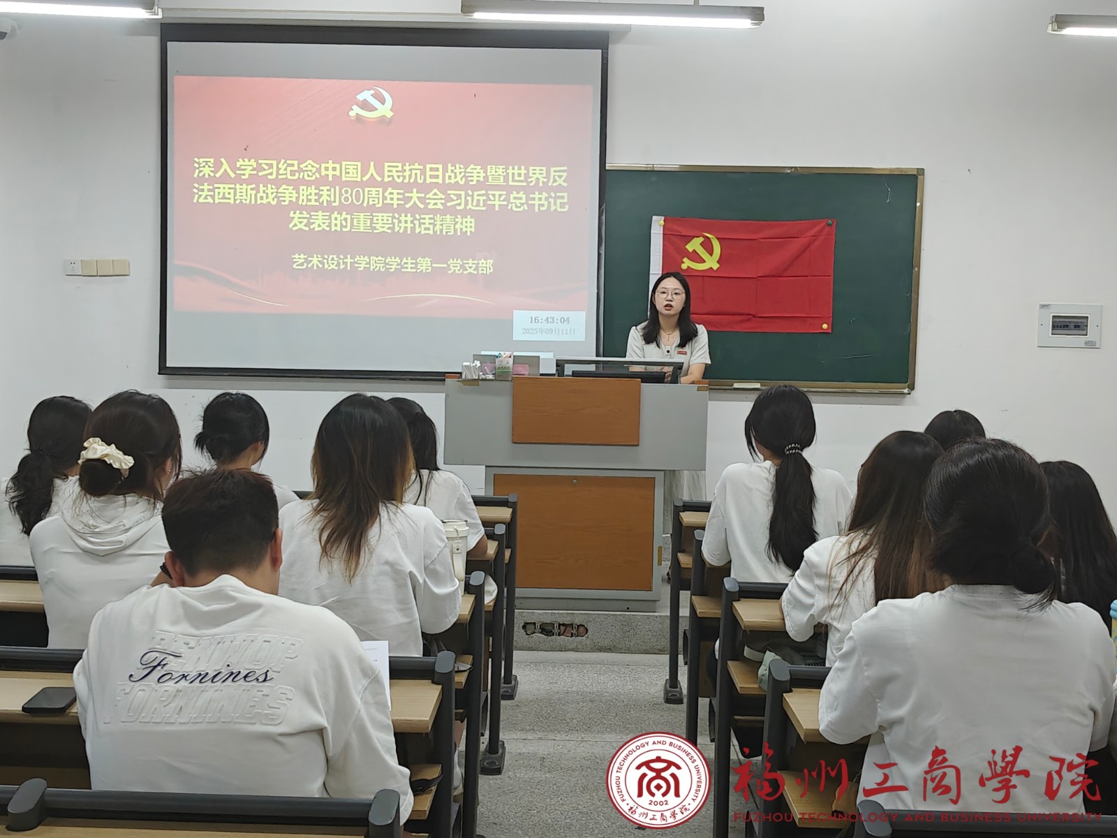 9月17日,艺术设计学院党委下属各党支部组织深入学习纪念中国人民抗日战争暨世界反法西斯战争胜利80周年大会习近平总书记发表的重要讲话精神。各支部书记主持,支部全体党员参加。