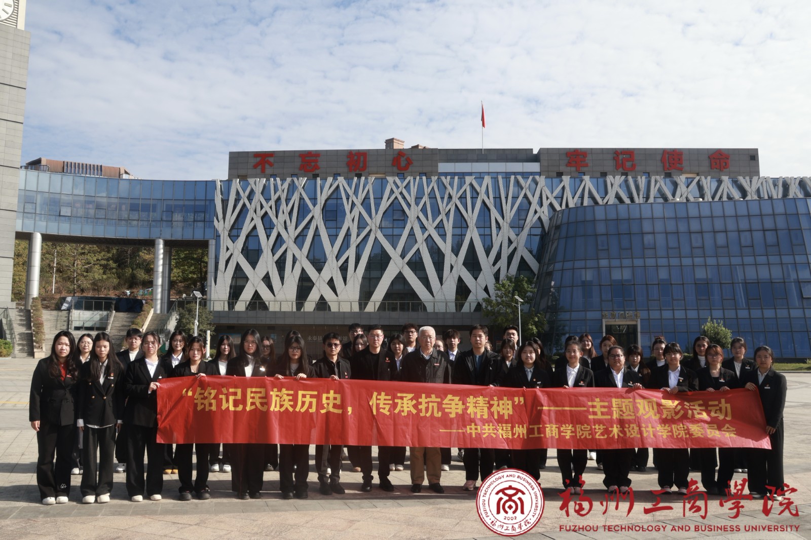 为深化党史学习教育,弘扬爱国主义与民族精神,引导师生党员从历史中汲取信念与力量,2025年12月23日下午,福州工商学院艺术设计学院党委在永泰六馆一中心电影院组织开展“铭记民族历史,传承抗争精神”主题党日活动。福州工商学院校长景林、艺术设计学院党委书记张鹤与各党支部书记、委员以及学生党员代表共同参加了本次集体观影。