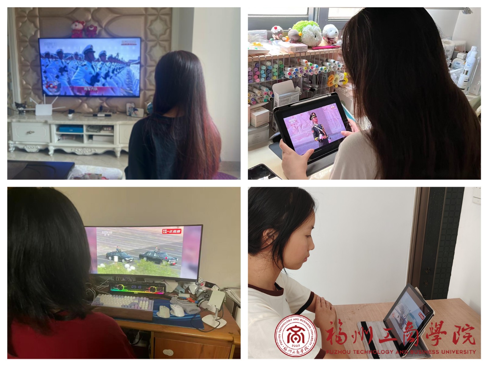 2025年9月3日,纪念中国人民抗日战争暨世界反法西斯战争胜利80周年阅兵活动在北京天安门广场隆重举行。艺术设计学院组织全体学生观看了此次阅兵直播。