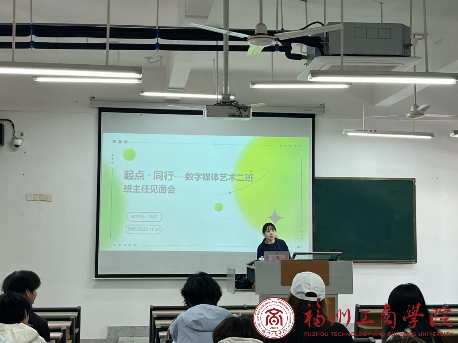 为建立高效的师生沟通渠道,加强班级建设,引导2025级数字媒体艺术2班同学明确学业规划,2025年11月25日,班级在A403教室举行了“起点·同行”主题班主任见面会。本次会议由班主任刘欢老师主持,全体同学参与,现场气氛融洽。